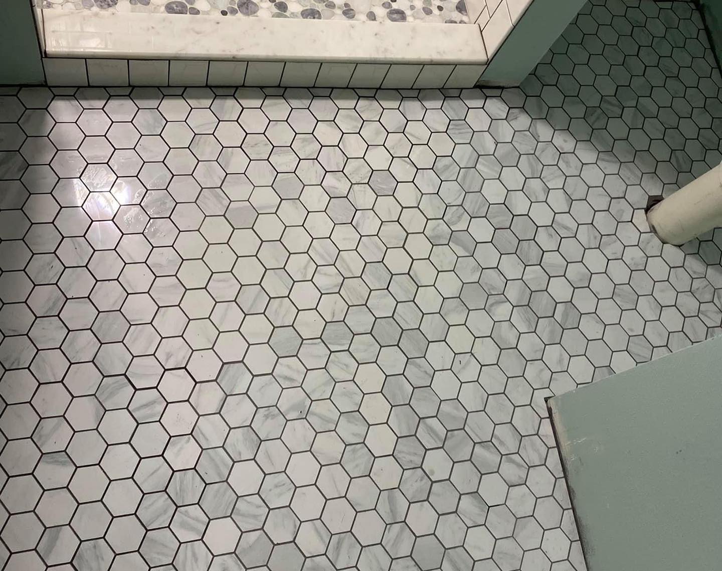 New bathroom flooring installation with waterproof, slip-resistant materials